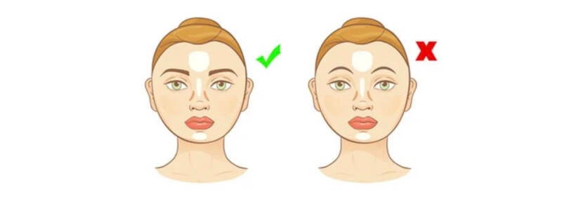 Dit punt begint bij de neusvleugel en loopt schuin omhoog langs de rand van je pupil. Het kruisingspunt met de wenkbrauw is het hoogste punt.